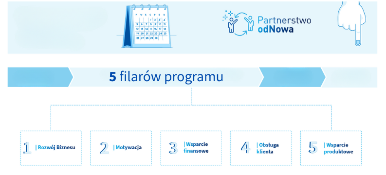 Program Partnerstwo odNowa powstał z potrzeby ciągłego rozwoju kanału wyłącznego. Jesteśmy liderem na rynku i to na nas spoczywa odpowiedzialność za wyznaczanie nowych trendów w sprzedaży ubezpieczeń, najwyższej jakości obsługi klientów, czy wsparcia naszych agentów. Program jest wynikiem dialogu z naszymi partnerami. Słuchamy, rozmawiamy i wspólnie kreujemy przyszłość ubezpieczeń, w oparciu o doświadczenia i pomysły najlepszych ekspertów w tej branży. Chcemy się skupić na rozwoju biznesu, motywacji, wsparciu finansowym i merytorycznym, na obsłudze klienta i wsparciu produktowym dla naszych Partnerów.